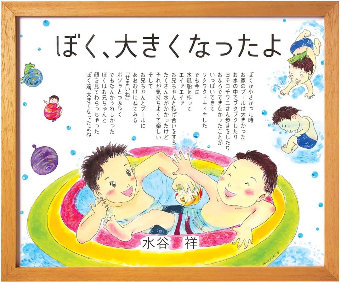 2019年度受賞作品, ARTIST, AWARD, 梅村 万里子 【ざぶん文化賞】ぼく、大きくなったよ 2022年6月10日 ぼくが小さかった時 お家のプールは大きかった お水の中でブクブクしたり ヨチヨチワニさん歩きをしたり おふろでできなかったことが いっぱいできて ワクワクドキドキした でも今は 水風船を作って エイッエイッ お兄ちゃんと投げ合いをする たくさん水がかかったけど それが気持ちよくて楽しい そして お兄ちゃんとプールにあおむけにねてみる 「せまいね」 ボソッとつぶやく でもなんかうれしかったぼくはお兄ちゃんと 顔を見てわらっちゃったぼく達、大きくなったよね 前 【ざぶん文化賞】川 最近 【ざぶん文化賞】なまずと私 こちらもおすすめ 【特別賞】壮大な自然を守るのは 2022年8月31日 【特別賞】富士山と富士川 2022年8月26日 【ざぶん文化賞】べんちょこ 2022年8月22日 コメントを残す コメントをキャンセルメールアドレスが公開されることはありません。 ※ が付いている欄は必須項目です名前 ※ メール ※ サイト 次回のコメントで使用するためブラウザーに自分の名前、メールアドレス、サイトを保存する。 コメント