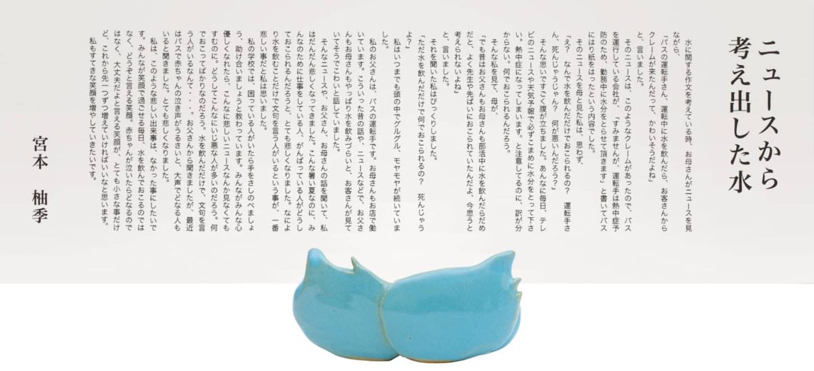 私のお父さんは、バスの運転手です。お母さんもお店で働いています。こういった昔の話や、ニュースなどで、お父さんもお母さんもやっぱり水を飲みづらいと、お客さんが見ていてそうでこわいと話していました。