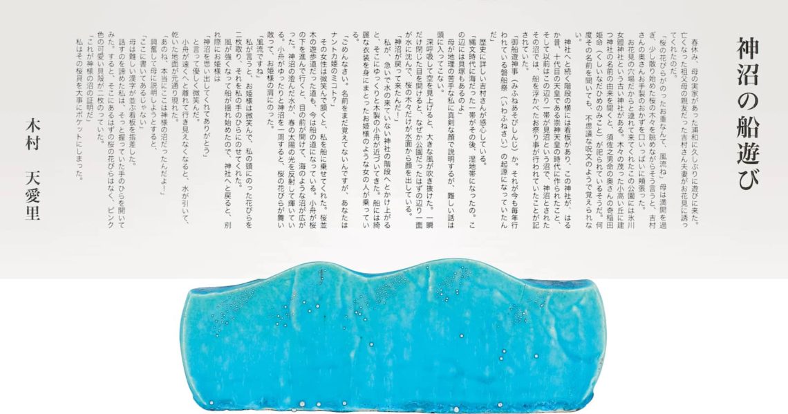 その女性は微笑んで頷くと、私を船に乗せてくれた。桜並木の遊歩道だった道も、今は船の道になっている。小舟が桜の下を進んで行くと、目の前が開けて、海のような沼が広がった。神沼の澄んだ水が、春の太陽の光を反射して輝いている。小舟がゆったりと神沼を一周すると、桜の花びらが舞い散って、お姫様の肩にのった。
