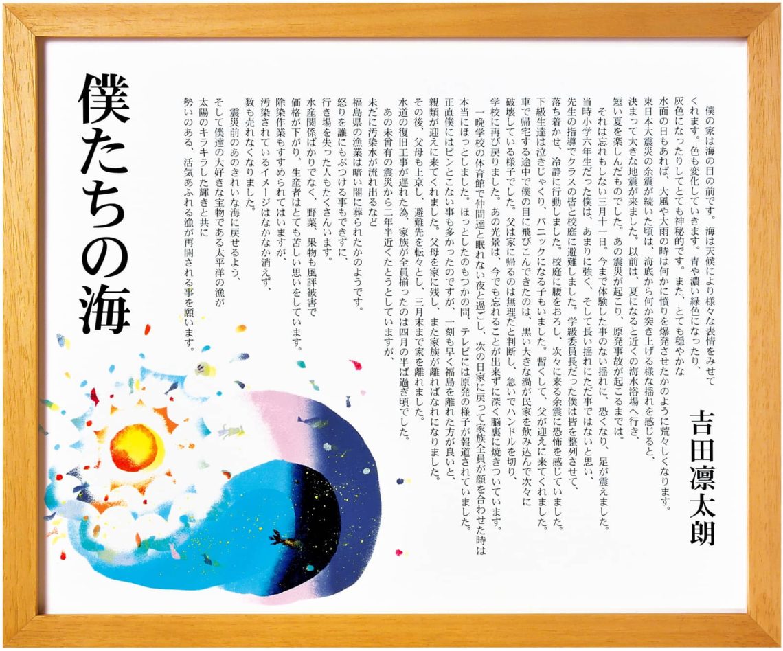 震災前のあのきれいな海に戻せるよう、そして僕達の大好きな宝物である太平洋の漁が太陽の