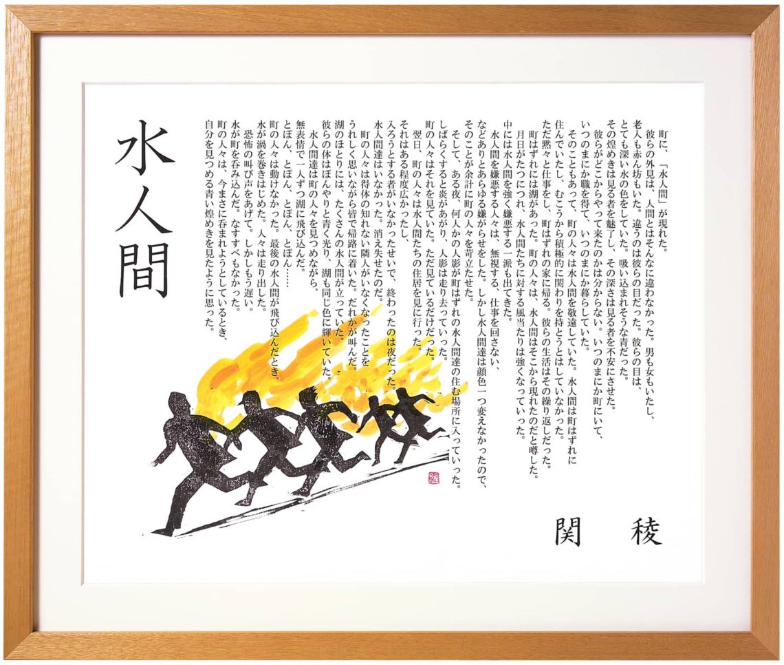 水人間達は町の人々を見つめながら、無表情で一人ずつ湖に飛び込んだ。とぽん、とぽん、とぽん、とぽん……町の人々は動けなかった。最後の水人間が飛び込んだとき、水が渦を巻きはじめた。人々は走り出した。