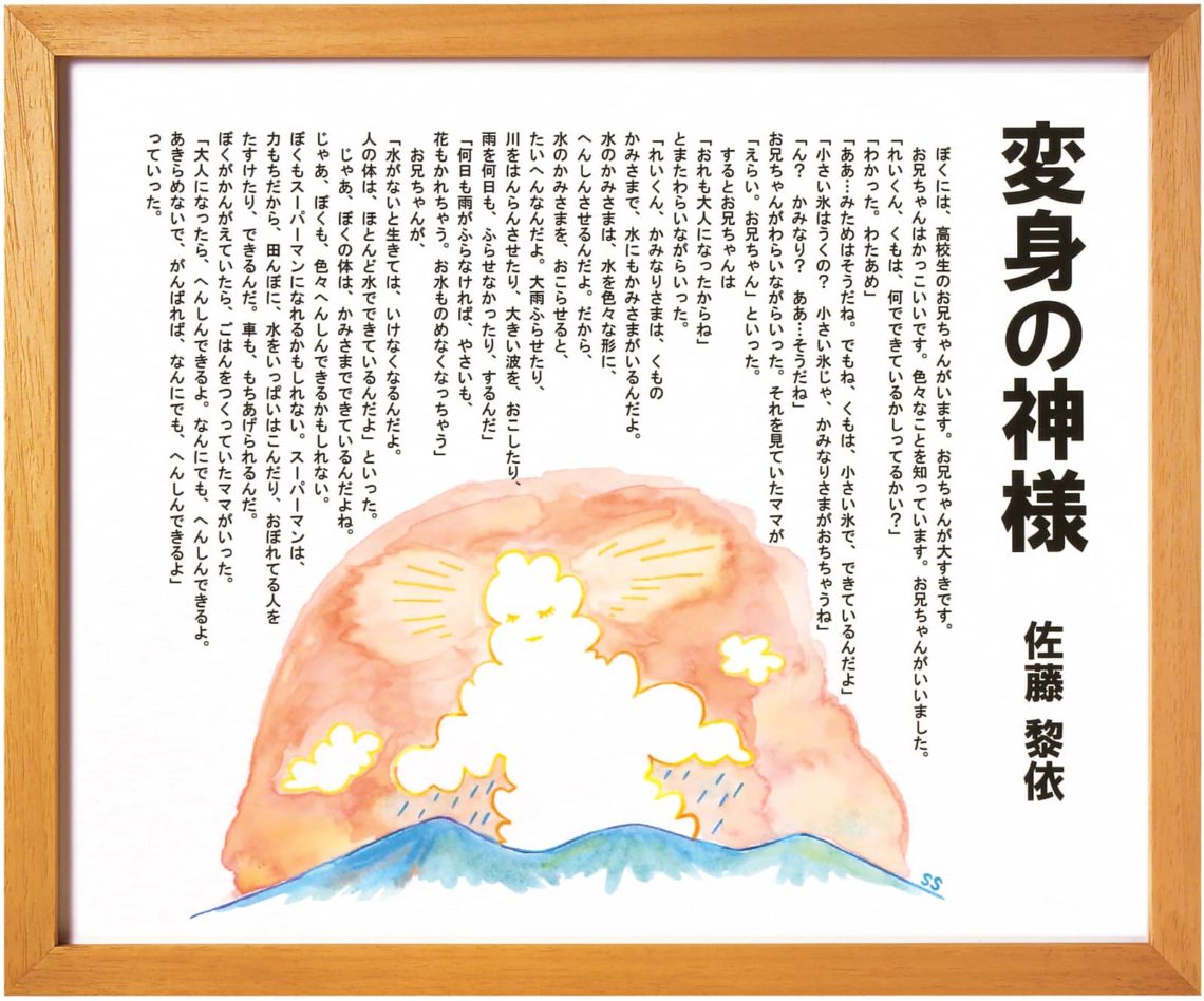 「れいくん、かみなりさまは、くものかみさまで、水にもかみさまがいるんだよ。水のかみさまは、水を色々な形に、へんしんさせるんだよ。だから、水のかみさまを、おこらせると、たいへんなんだよ。大雨ふらせたり、川をはんらんさせたり、大きい波を、おこしたり、雨を何日も、ふらせなかったり、するんだ」