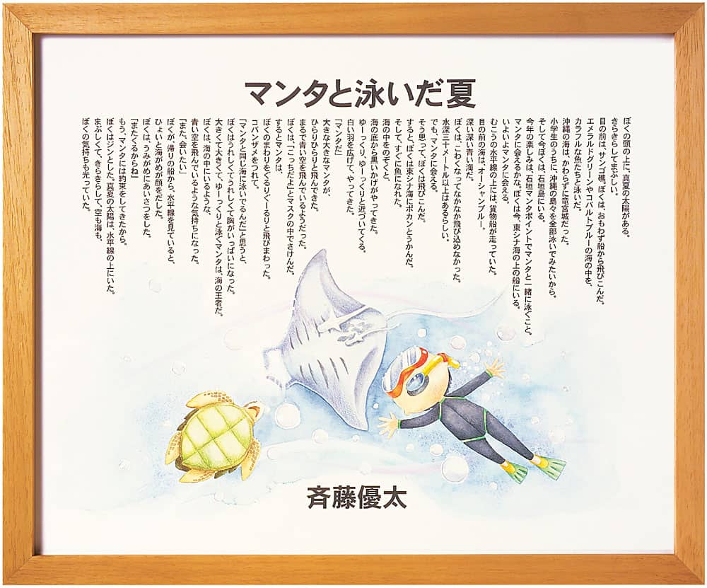 大きくて大きくて、ゆーっくりと泳ぐマンタは、海の王者だ。 ぼくは、海の中にいるような、