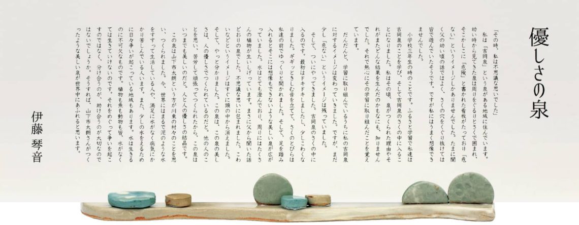 とを思い、苦労して頑張ってつくられたから、この泉はいつまでも美しいのだと。人と人の優しさの結