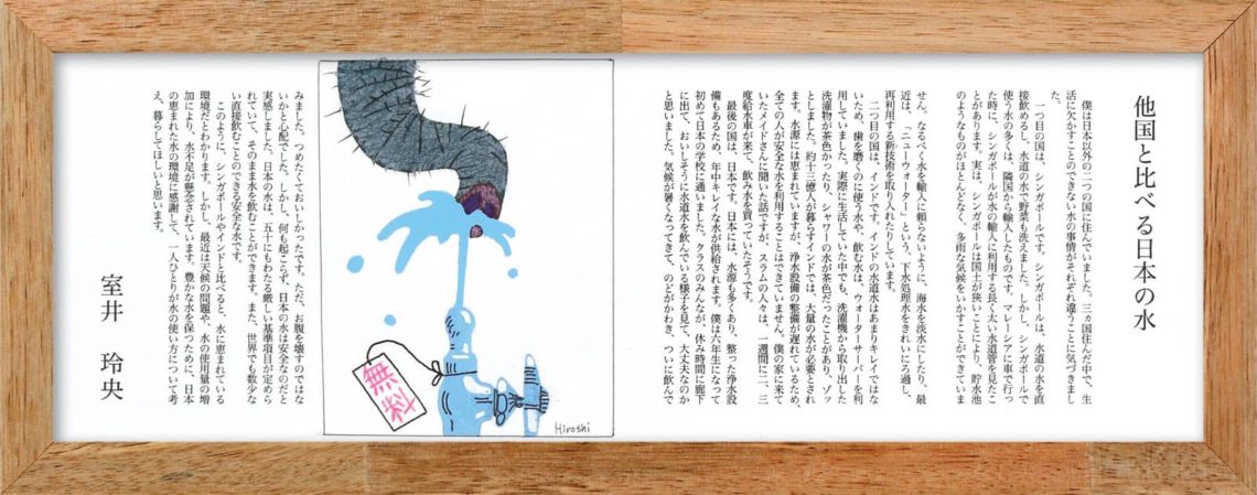 本の恵まれた水の環境に感謝して、一人ひとりが水の使い方について考え、暮らしてほしいと思います。