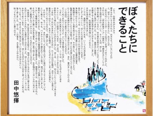とてつもなく広い海の中で、同じ粒と二度会えるなんて奇跡としか言いようがない。再会の喜びも束 の間、僕の体は、ふわりと浮き上がり空へ吸い込まれて行く。水の粒同士で良く起こる事だ。話してい る途中に、どちらかが蒸発してしまうのだ。僕にとっては、これが初めての蒸発。どんどん遠くなるツ ルリンが見えなくなるまで手を振り続けた。