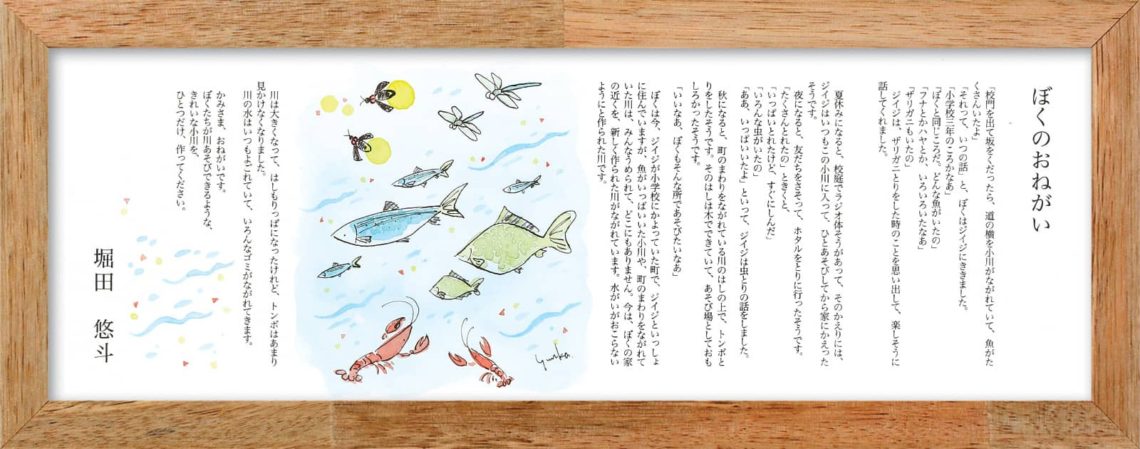 「校門を出て坂をくだったら、道の横を小川がながれていて、魚がたくさんいたよ」