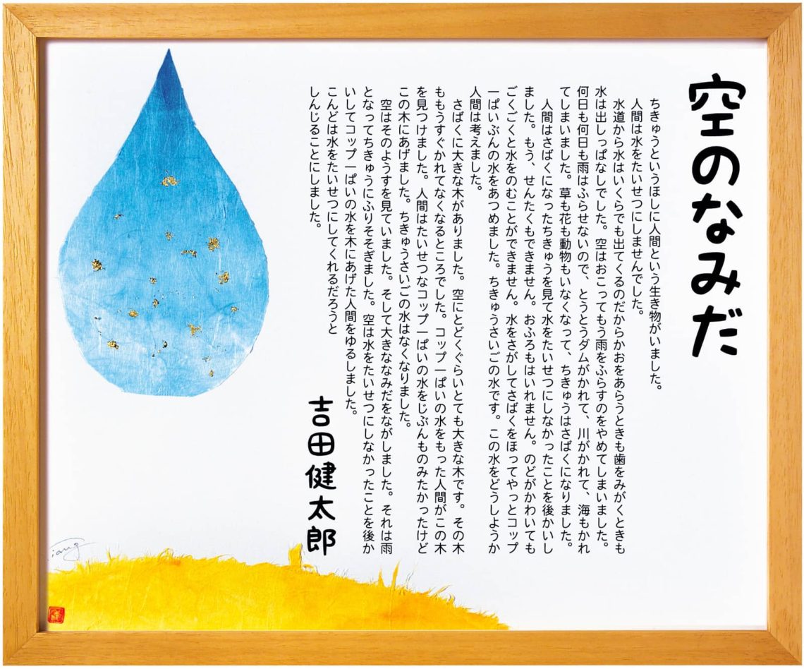 きゅうにふりそそぎました。空は水をたいせつにしなかったことを後かいしてコップ一ぱいの水