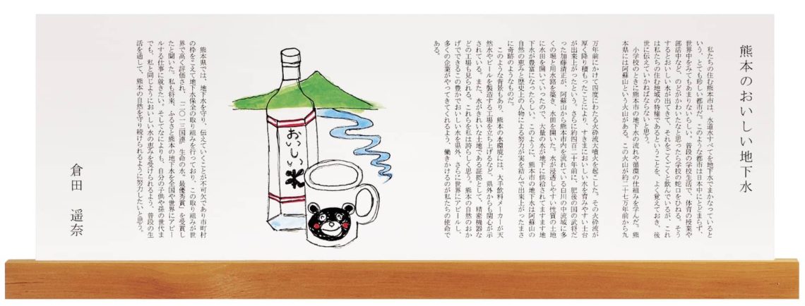 賞したと聞いた。私も将来、ふるさと熊本の地下水を全国や世界にアピールする仕事に就きたい。そし
