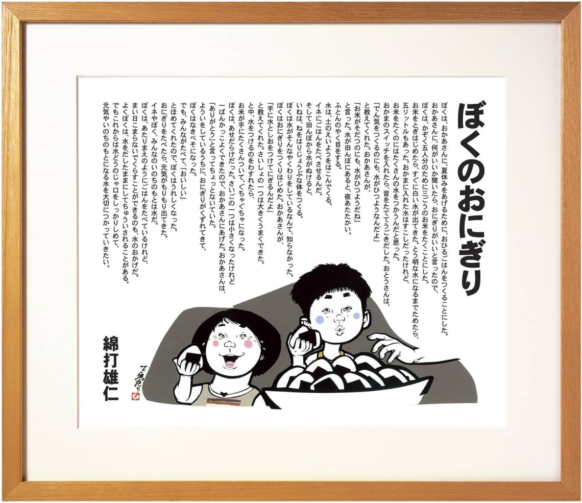 と言った。水が田んぼにあると、夜あたたかい。ふとんのやく目をする。水は、土のえい ようをはこんでくる。イネにごはんをたべさせるんだ。そして田んぼから水がぬけると、い ねは、ねをはりじょうぶな体をつくる。ぼくは水がそんなやくわりをしているなんて、知ら なかった。ぼくはおにぎりをつくりはじめた。おかあさんが、