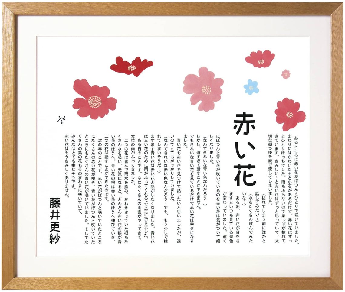 ある朝、赤い花が目をさますといつも見ている景色が変わっていました。遠くにぽつんと 青い花が咲いているのを赤い花は気がついて嬉しくなりました。