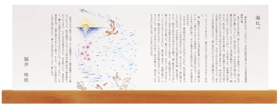 なっても松山の海に私の子供を連れて行ったときに、いろんな生き物をみたり、貝を拾ったり、景色を