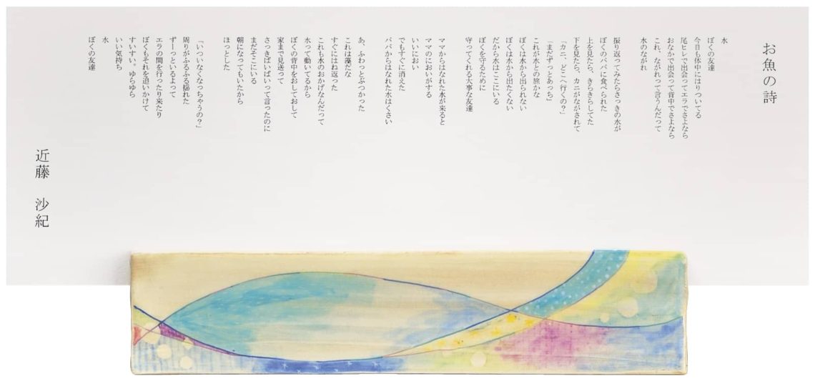 2015年度受賞作品, ARTIST, AWARD, 山本 みゆき 【特別賞】お魚の詩 2022年8月17日 水 ぼくの友達今日も体中にはりついてる 尾ヒレで出会ってエラでさよなら おなかで出会って背中でさよなら これ、ながれって言うんだって 水のながれ振り返ってみたらさっきの水が ぼくのパパに食べられた 上を見たら、きらきらしてた 下を見たら、カニがながされて 「カニ、どこへ行くの?」 「まだずっとあっち」 これが水との旅かな ぼくは水から出られない ぼくは水から出たくない だから水はここにいる ぼくを守るために 守ってくれる大事な友達 ママからはなれた水が来ると ママのにおいがする いいにおい でもすぐに消えた パパからはなれた水はくさい あ、ふわっとぶつかった これは藻だな すぐにはね返ったこれも水のおかげなんだって 水って動いてるから ぼくの背中をおしておして 家まで見送って さっきばいばいって言ったのに まだそこにいる 朝になってもいたから ほっとした「いついなくなっちゃうの?」 周りがふるふる揺れた ずーっといるよって エラの間を行ったり来たり ぼくもそれを追いかけて すいすい。ゆらゆら いい気持ち 水 ぼくの友達 前 【特別賞】海比べ 最近 【特別賞】命と水 こちらもおすすめ 【特別賞】ひいおばあちゃん 2022年8月22日 【文部科学大臣賞】海と生きるということは・・・ 2022年7月21日 【準ざぶん大賞】海と一緒に 2022年8月22日 コメントを残す コメントをキャンセルメールアドレスが公開されることはありません。 ※ が付いている欄は必須項目です名前 ※ メール ※ サイト 次回のコメントで使用するためブラウザーに自分の名前、メールアドレス、サイトを保存する。 コメント