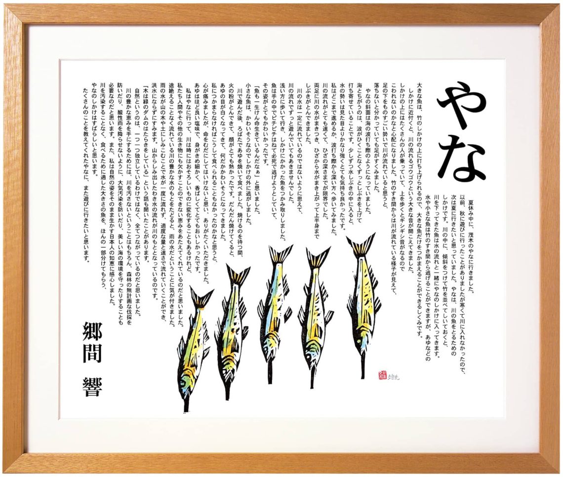 な伐採を防いだり、酸性雨を降らせないように、大気汚染を防いだり、美しい海の環境を守っ たりすることも必要なのだと思います。また、私は自然の姿をそのまま生かす日本人の知恵 に感心しました。川を汚染することなく、食べるために適した大きさの魚を、ほんの一部分 けてもらう、やなのしかけはすばらしいと思います。たくさんのことを教えてくれたやなに、また遊びに行きたいと思います。