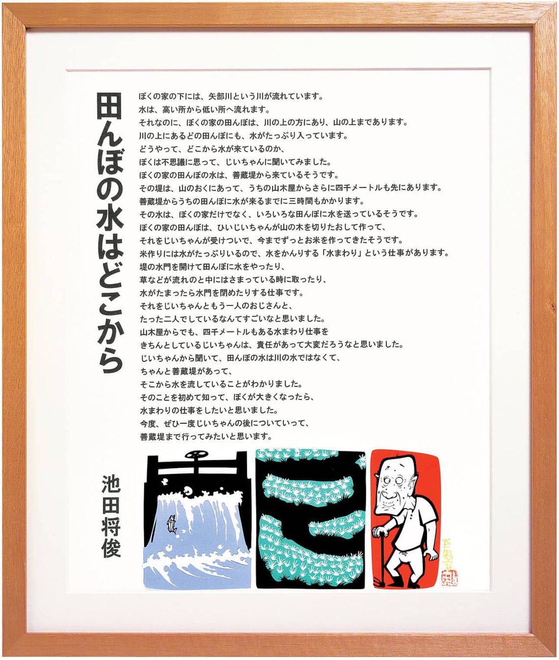 ぼくの家の田んぼの水は、善蔵堤から来ているそうです。その堤は、山のおくにあって、