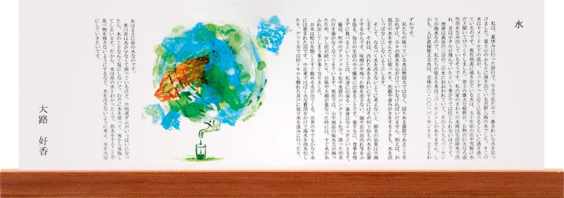 で、むだに水を使って、後から後悔してしまいます。だから、水は命の水とわかった上で、節水をすることや食べ物を残さないようにするなど、水を汚さないように考え、水を大切にしていきたいです。