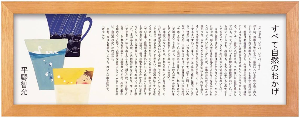 さあ、今日もお風ろに入って、おいしい水を飲むぞ。 「ざっぶん」