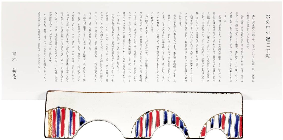 まうと、次の日、水が軽くなってとても泳ぎづらいのです。それは、私が一日水に入らなかったことによっての、水からの嫉妬でしょうか。二日、三日と続けて水に入ると水の軽さがなくなり、いつもの感覚に戻ります。そのときは、きっと水が許してくれたときだと思います。学校の友達とはちがい、道内の大会で会ったライバルという名の友達は、一つ年上の人や、一つ年下の