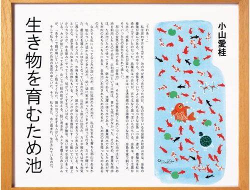 ある日、ぼくが学どうから帰ると、ボスくんは死んでいました。さかさまになり、水にう かんでいました。きっと、岩場が高すぎて上れなかったのだと思います。