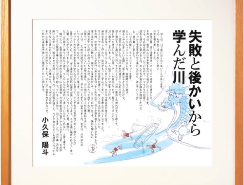 そして七月に元気な赤ちゃんが生まれました。お母さんと赤ちゃんがぶじにたいいんして、 お家に帰ってくると、お母さんはまた水をたくさんのんでいました。今どは赤ちゃんに母にゅ うをあげるためにお水をたくさんのんでいたのです。毎日、赤ちゃんをだっこしていました が、少しずつ大きくふっくらして重くなっていくのがわかりました。三ヵ月すると、首もしっ かりしてきてわらうようになりました。赤ちゃんは、「お母さんの母にゅうだけでこんなに 大きくなるんだ。すごいなあ」と、思いました。