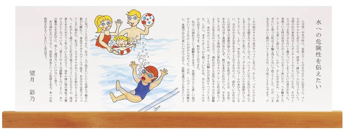 水は溺れるだけでなく、津波や洪水といった危険もある。水への危険性を伝えていきたいと私は思う。