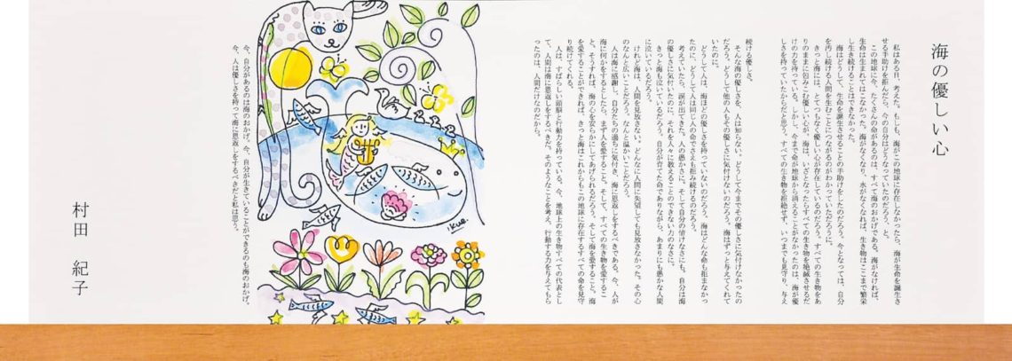 今、自分があるのは海のおかげ。今、自分が生きていることができるのも海のおかげ。今、人は優しさを持って海に恩返しをするべきだと私は思う。