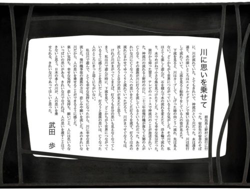 群馬県上野村に旅行に行った。宿泊先の宿舎のそばに、川が流れていた。とてもきれ…